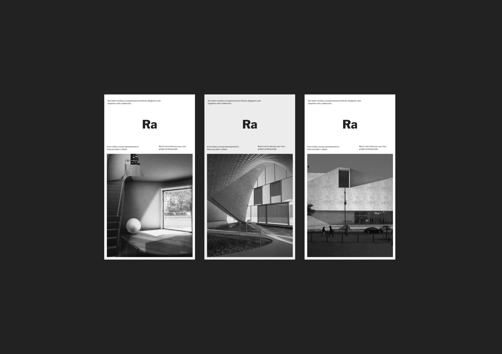 RA Architecture Studio is an architectural practice focused on contemporary design, spatial clarity, and structural precision. The goal of the project was to develop a visual identity that reflects the studio’s architectural mindset — rational, minimal, and system-driven. The identity is built around a modular approach, where every element follows a clear logic of structure and composition. Through refined typography, geometric forms, and controlled use of space, the brand communicates both discipline and visual confidence.